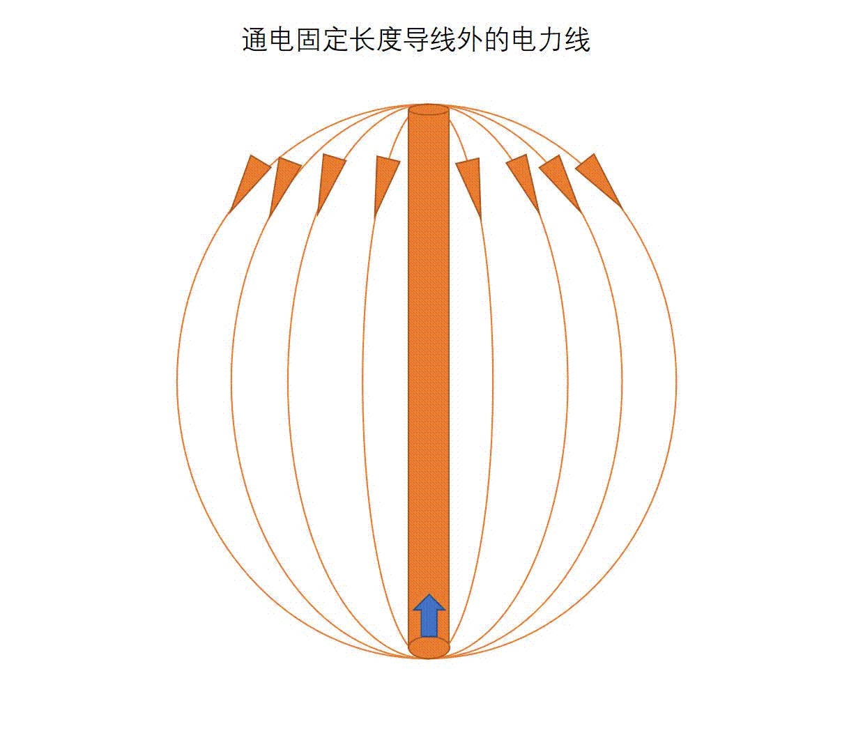 3通电固定长度导线外的电力线:从通电固定长度导线正极出发回到通电固定长度导线负极;