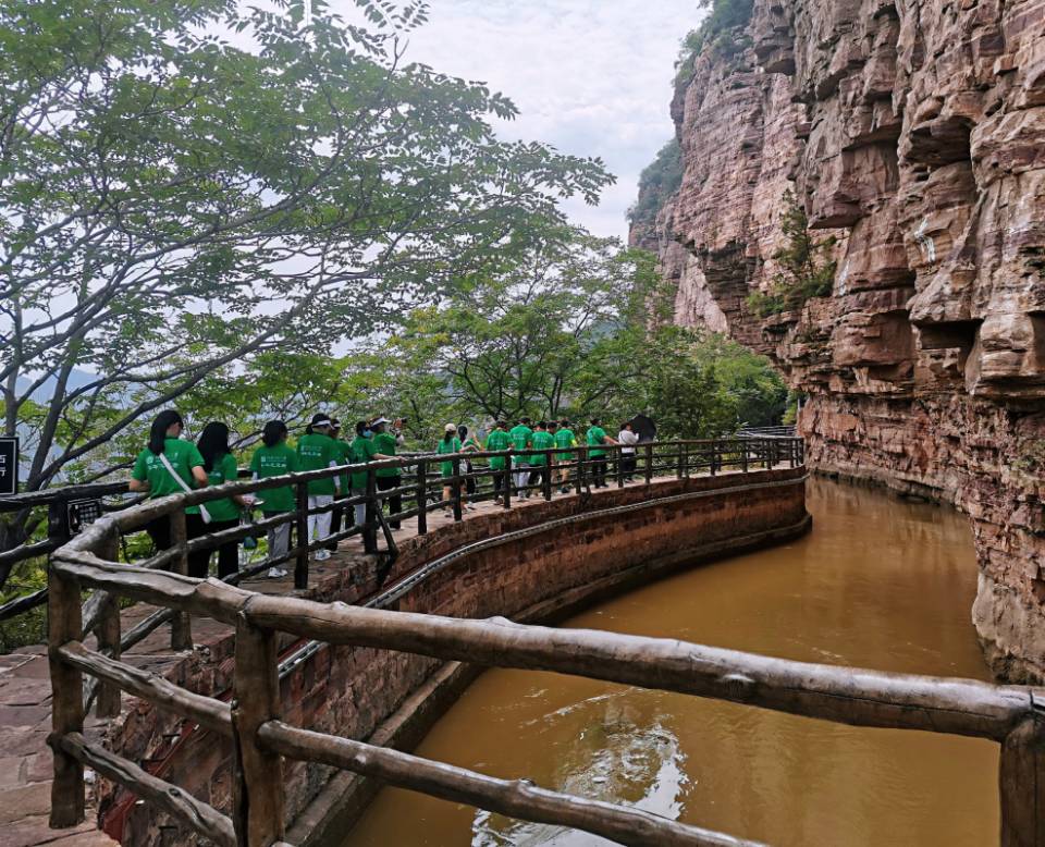 回归历史,亲身感悟,走进红旗渠,走访历史中林州人民为解决自己所在土地的干涸而奋力拼搏、也是今天后辈在体验感悟中明白团结合作的红旗渠。全体调研团队队员踏上红桥,寻访这山山水水给人精神滋养的伟大工程。队员一路走过仿若鹰嘴的鹰咀山、地势险恶的虎口崖、单薄简陋的神工铺、仅容一人通过的一线天,到达青年洞,看渠水从洞中流出,学生深感震撼,大家明白那不仅仅是一泉水,更是一家一户的生的希望。