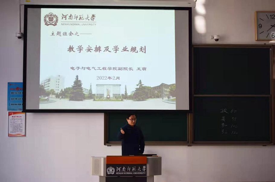 2月26日下午,我院2021级在东区综合教学楼302教室组织开展了“筑梦新学期·一起向未来”的主题班会。本次班会旨在帮助同学们尽快从舒适假期模式中调整过来,帮助他们树立清晰的目标,明确奋斗的方向。学院党委副书记邓晓刚与教学副院长王萌参加,本次班会由21级辅导员梁猛主持,除6名同学因疫情原因居家外,21级276名在校学生全部参加会议。