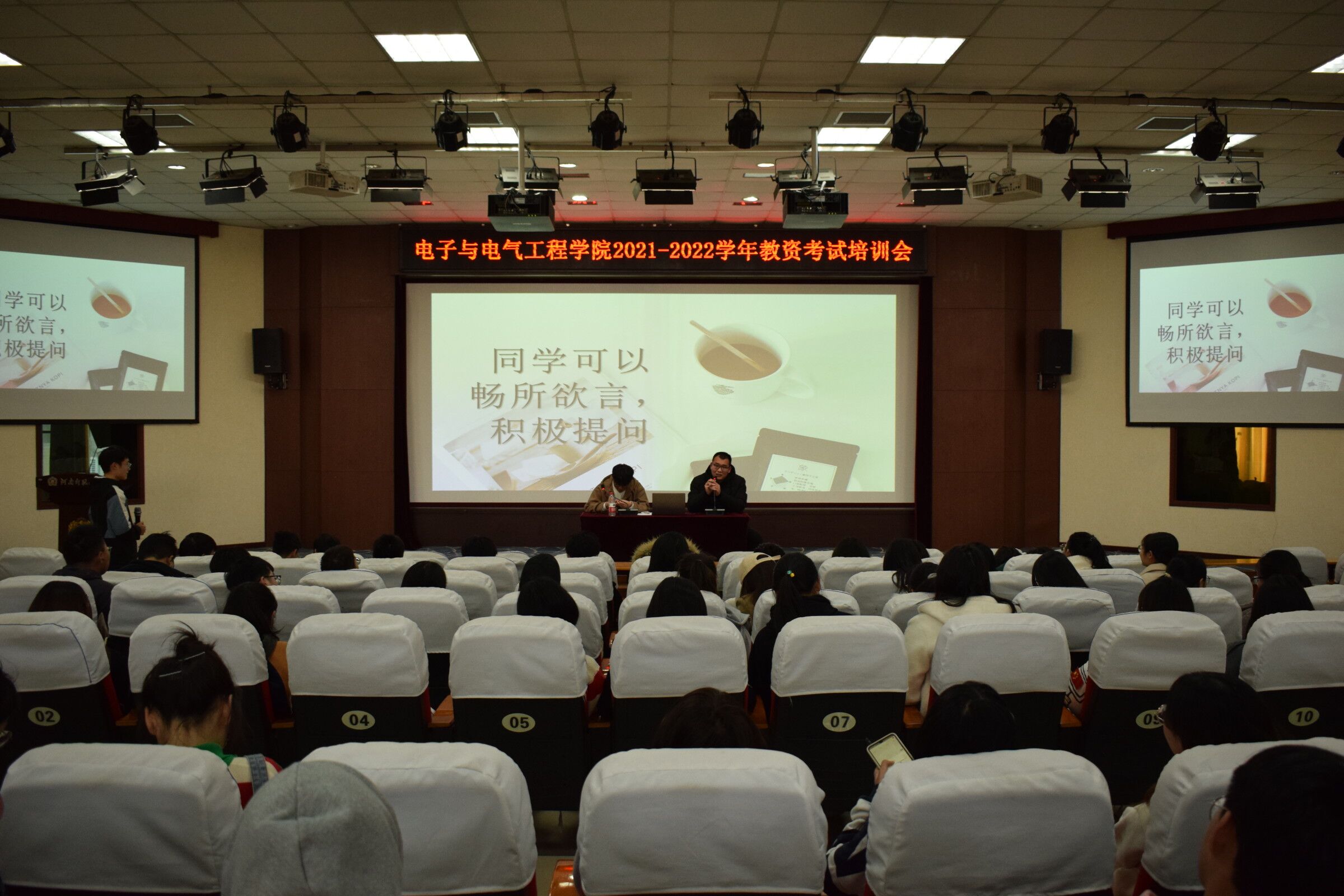 2022年03月01日下午三点,我院在物理北楼三楼报告厅举行电子与电气工程学院2021-2022学年教资考试培训会,本次会议旨在详细解读教资考试中的种种技巧以及注意事项,帮助同学们更好的应对即将到来的教资考试。电气工程及其自动化专业廖李昕以及电子信息工程专业王东阳参与会议,本次会议由21级学生代表吕雨静同学主持。下午三点,全体成员入场完毕,会议正式开始。