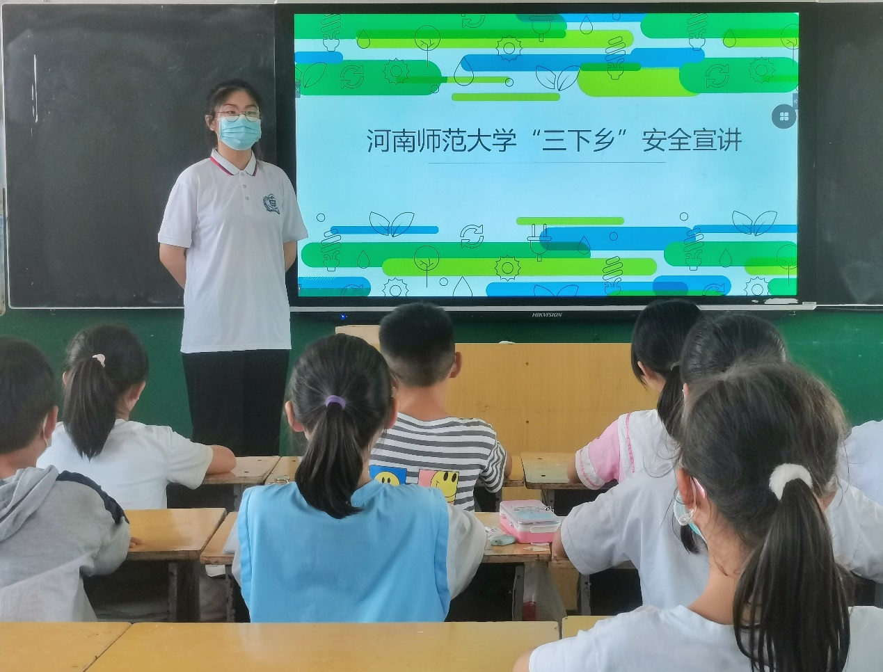 为提高学生安全意识,做实做细假期安全防范教育,7月14日下午,电子与电气工程学院“乡村振兴·电燃未来”实践调研团奔赴长垣市方里镇,在方里中心小学开展安全宣讲和师大故事演讲活动。
