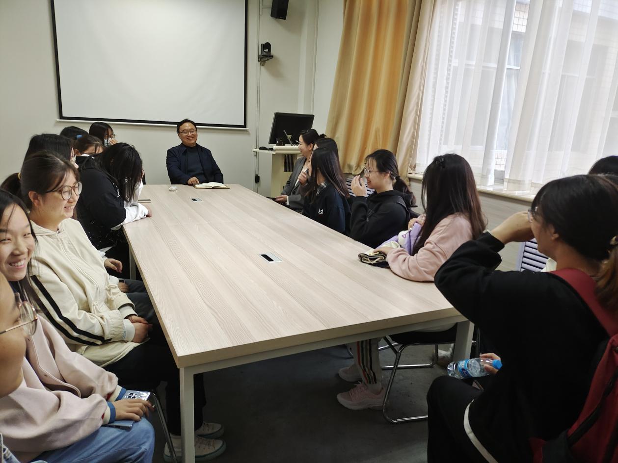 交谈中,宋老师结合自身实践与经历,做重点分享,从思想、心理、就业等方面,为同学们答疑解惑,并就生活学习提出五点建议:一是要珍惜时间,高效率使用时间,利用别人所不能利用的时间,得到比别人更多的收获;二是要加强专业知识学习与技能训练,以“量变”谋“质变”,早励志,立大志,努力实现更高层次的研修梦想;三是要坚持读书,多读书,读好书,不断积淀内涵、提升综合素质,以“开卷”方式丰满羽翼;四是要懂得坚持,培养韧性,修炼性格,在任何时候都不要随波逐流;五是要培养兴趣爱好,多组织、多参加各种趣味性活动和竞赛活动,于活动中丰富情感,增强体魄。