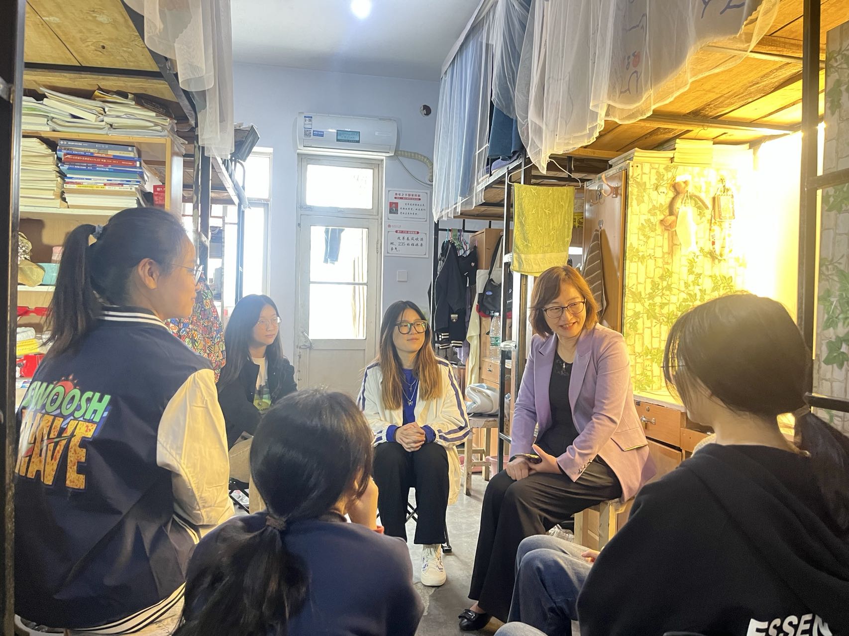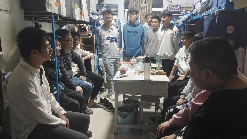走访中,梁猛汇报了宿舍基本情况,与会同学就个人发展规划和校园学习生活等方面踊跃发言。张晨寒认真听取了每位同学的发言,对宿舍良好氛围和过去一年取得的成绩给予肯定,并就同学们关心的问题进行细致解答。通过深入交流,张老师提出几点希望:勉励同学们要珍惜大学时光,把握当下,在有限的大学学习生活中不断提升自身价值和竞争力,未来在社会中找到属于自己的位置,做新时代的接班人;要与时俱进,结合自身特点和发展规划,主动适应社会发展对人才的客观要求;坚定理想信念,练就过硬本领,积极提升专业技能,用知识改变自己,做堪当大任之人。