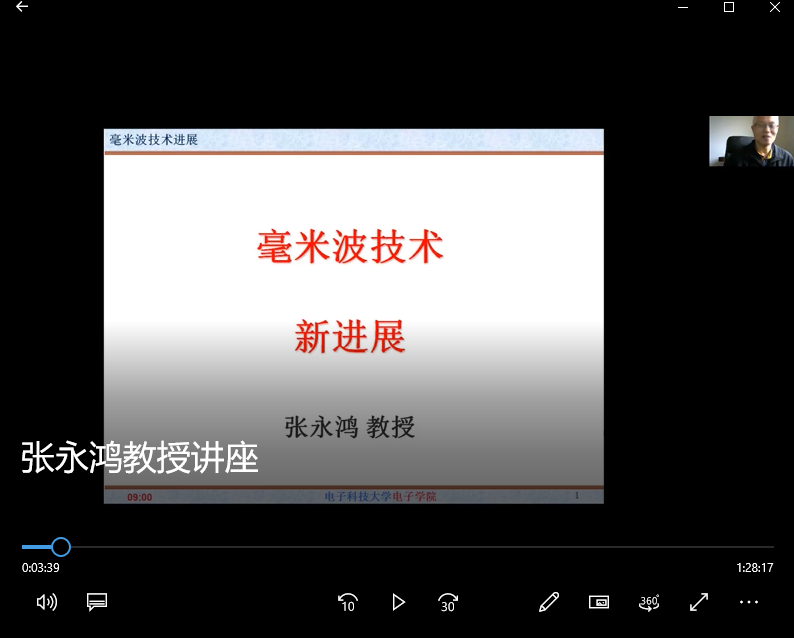 应我院邀请,电子科技大学张永鸿教授(博导)于11月18日上午9点在腾讯会议平台上作了题为《毫米波技术最新进展》的专题学术讲座。我院负责人、师生代表100余人参加讲座。讲座由院长王长清主持。