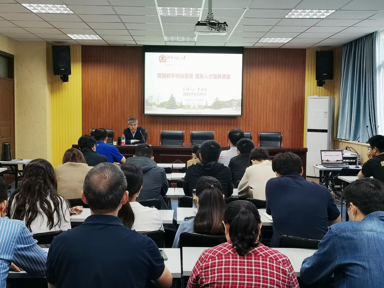为深入学习习近平总书记关于人才培养的重要论述,进一步推进学院专业建设发展,提高人才培养质量,5月29日上午,我院在学院C208召开党委理论学习中心组(扩大)学习暨专题辅导报告会。学院邀请教务处处长梁存良作专题辅导报告,学院全体教师参加,会议由学院党委书记李浩主持。