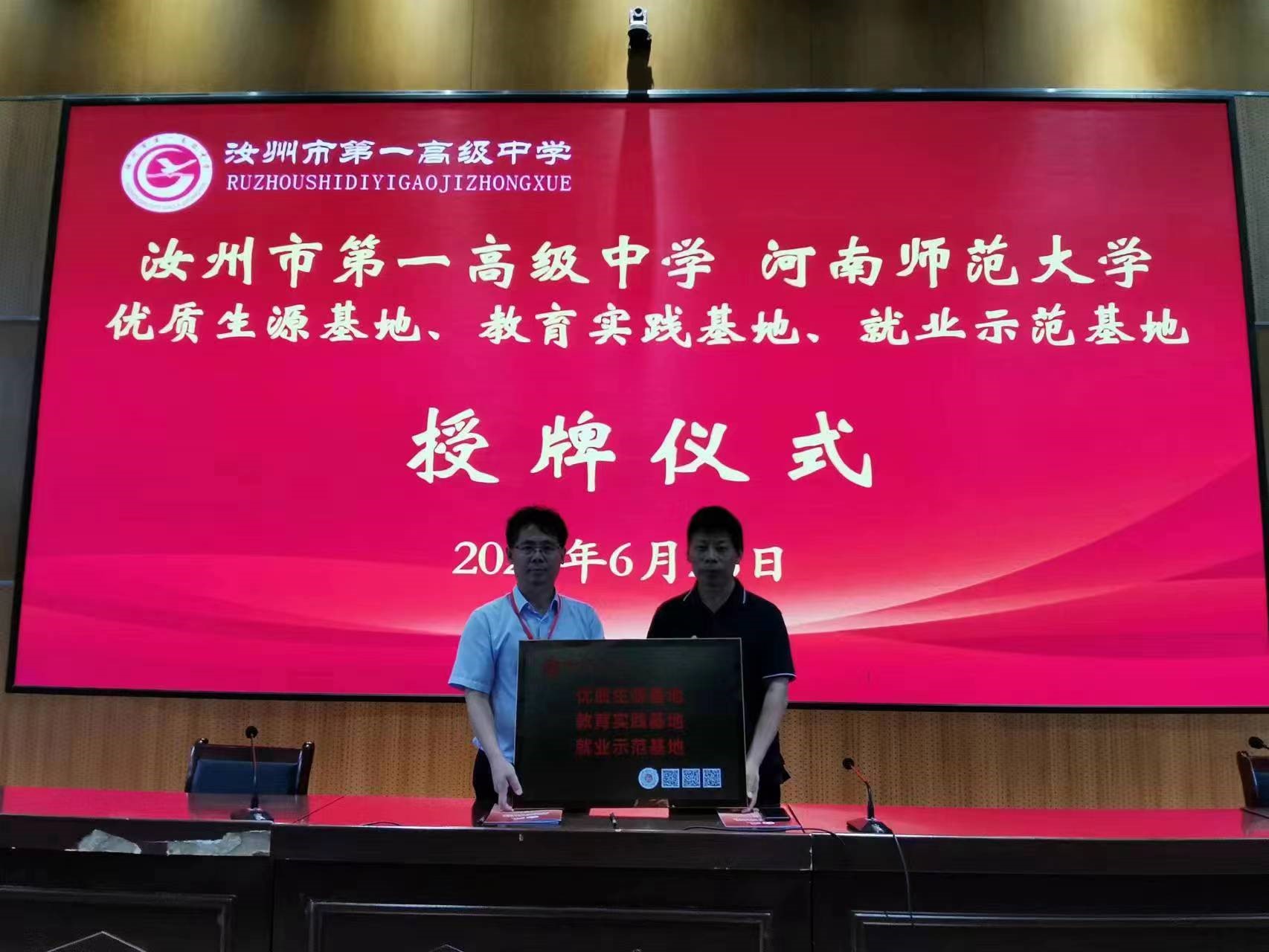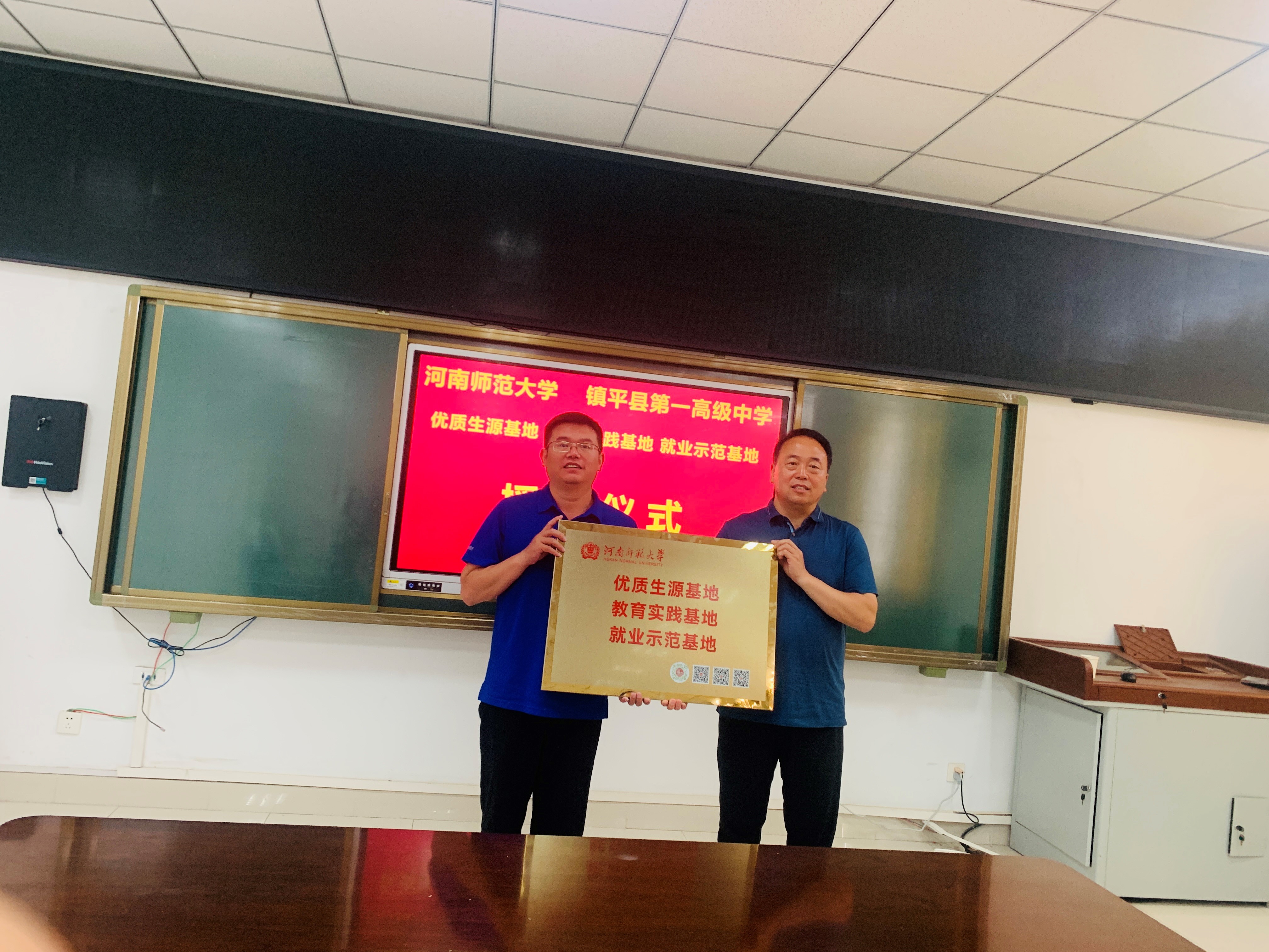6月27日至7月1日,我院招生宣传小组在院党委书记李浩、院长王长清的带领下,兵分两路,分别赴永城市第一高级中学、镇平县第一高级中学;汝州市第一高级中学、鲁山县第一高级中学、宝丰县第一高级中学开展“教授、博士进中学”高招宣讲活动暨“优秀生源基地、优秀实习基地、优秀就业基地”签约授牌工作。