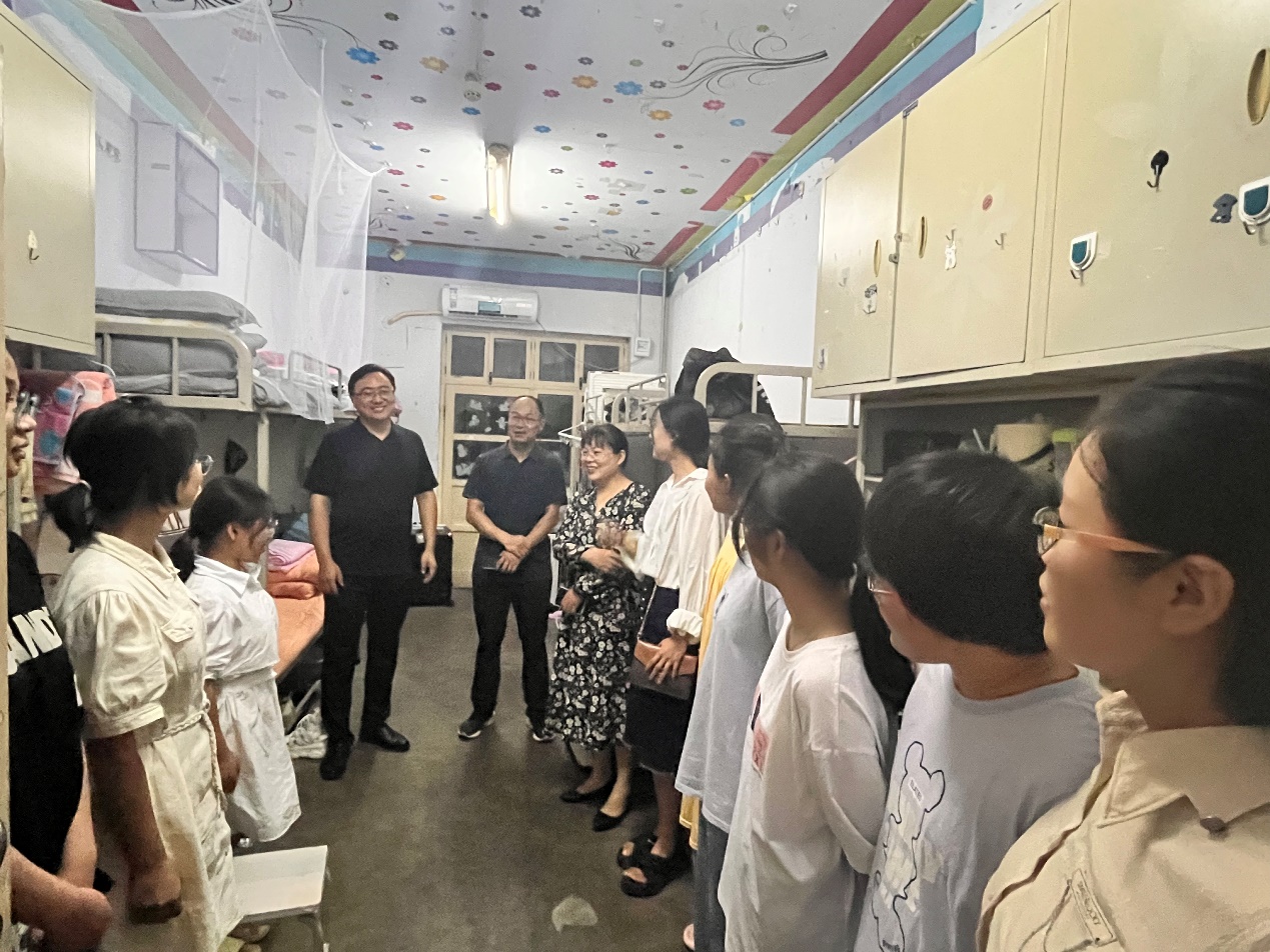 为深入了解我院新生情况,帮助新生尽快适应大学生活,9月10日晚上,我院党委书记高飞、院长王长清等领导老师前往2023级新生宿舍开展慰问工作,询问新生情况,回应新生诉求,为同学们送去温暖和关怀。