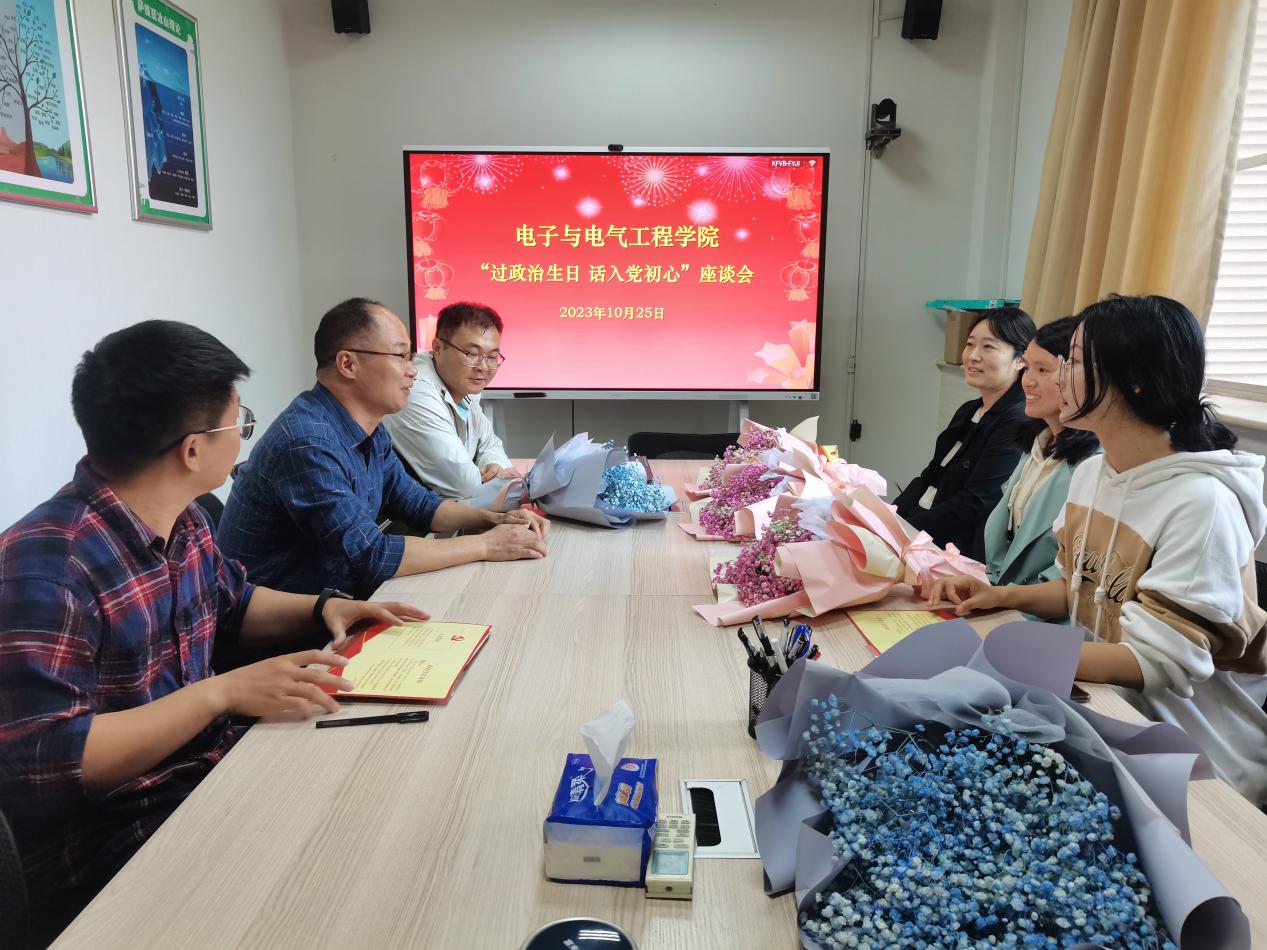为强化党员的身份意识和责任意识,引导党员不忘初心、牢记使命,我院在学院院士工作站召开“过政治生日 话入党初心”座谈会,学院相关负责人、党员教师参加。会议由学院党委书记高飞主持。