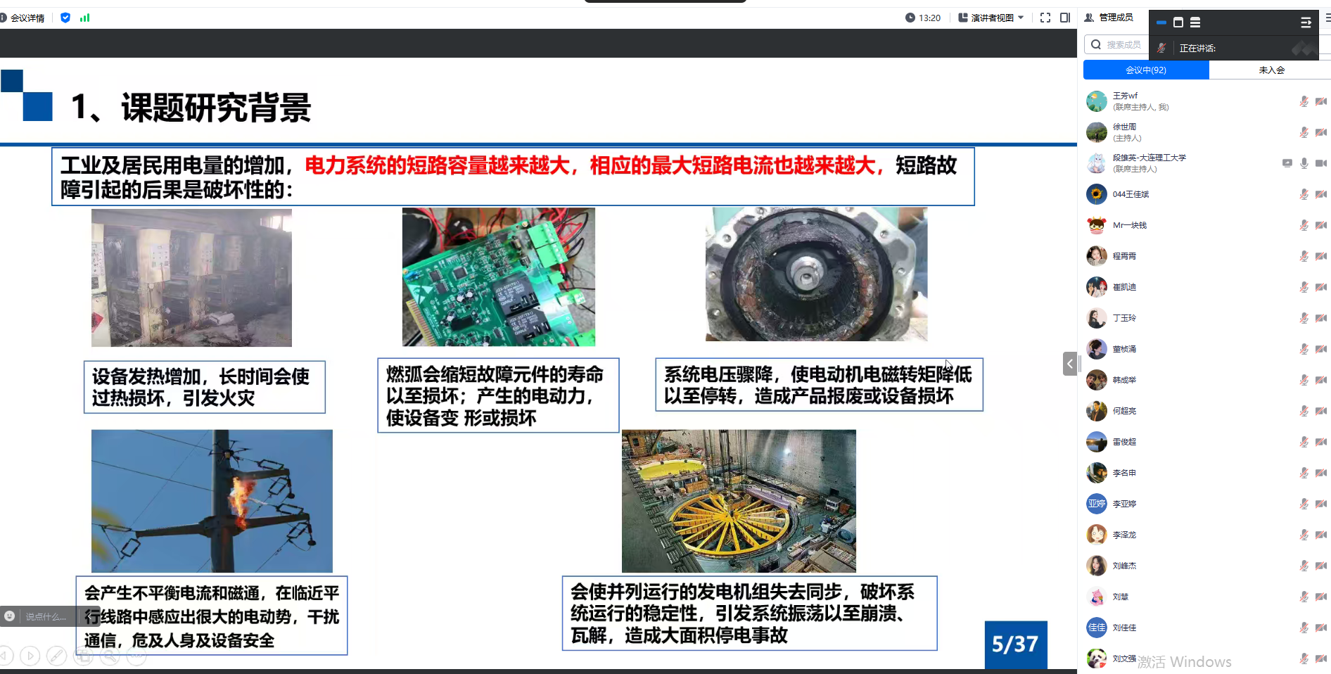 应我院邀请,大连理工大学段雄英教授(博导)于11月30日上午9点在腾讯会议平台上作了题为《新型液态金属限流器研究》的专题学术讲座。我院负责人、师生代表100余人参加讲座。讲座由副院长王芳主持。