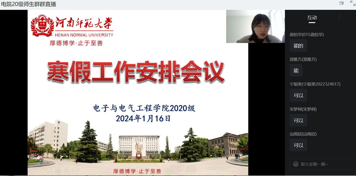 为切实做好学生假期教育管理工作,确保学生假期离校返乡的安全,1月16日上午,我院2020级召开寒假学生工作线上会议,2020级专兼职辅导员、全体学生参加会议,会议由辅导员王子月主持。会上,王子月围绕寒假期间学生安全管理及教育、困难学生资助、征兵、考研复习、就业工作等事项进行了安排部署。她提醒已经返乡的学生要注意出行安全,离校要进行离校报备,延迟留校的学生,要遵守学校规章制度,注意人身和财产安全;受资助学生要做好2023-2024学年伟德官网下载苹果版受资助情况温馨告知书的回执填写。详细解读了学校选调生的工作通知,鼓励大家根据报名条件积极报名;介绍了大学生征兵入伍的相关政策和待遇,鼓励学生积极响应国家号召应征入伍。最后,她强调,学生假期多与论文指导老师沟通,做好毕业论文相关后续工作;要珍惜假期时间,考研学生做好复试准备,其他学生树立正确就业观念,不断充实自己,积极做好职业规划。