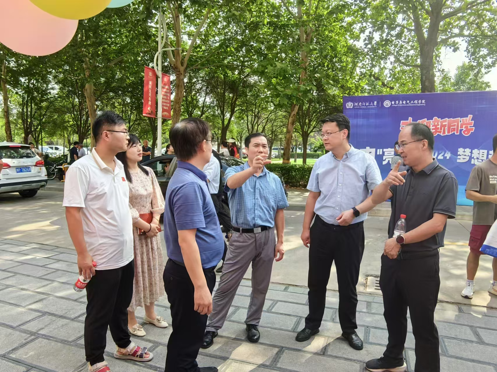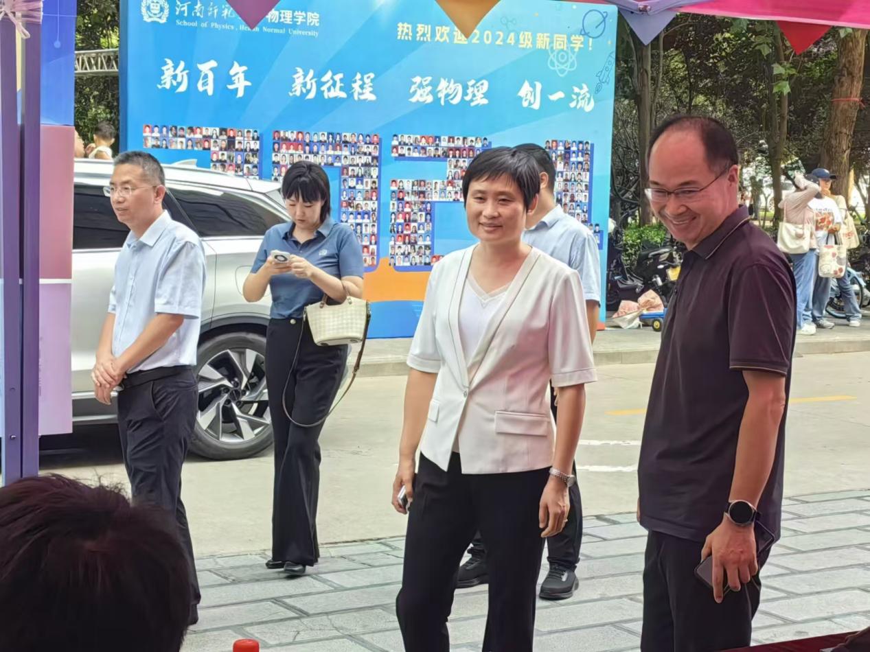 迎新当天,我院在物理北楼门前设置迎新点,在摊位处进行学生入校登记、发放新生大礼包、拍照打卡等。导航员们知责于心、履责于行,他们无处不在,帮忙搬运行李、互动交流、指引方向、介绍学院特色……他们一系列的暖心行为,赢得了新生及家长们的点赞。迎新期间,学校党委书记、校长冯淑霞等一行前往到我院迎新点了解迎新情况、看望新生。我院党委书记高飞、院长王长清、院党委副书记邓晓刚等在迎新现场指导学院迎新工作,与学生及学生家长亲切交谈,了解同学们的报道情况与来校后的感受,并对辛勤工作、热情服务的志愿者表达了深切的关怀和慰问。