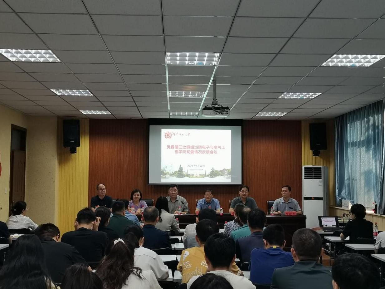 按照校党委巡察工作安排,9月20日下午,校党委第三巡察组巡察电子与电气工程学院党委情况反馈会在学院C208会议室召开。校党委常委、副校长杨亚东,校纪委、党委组织部、党委巡察办相关负责人,第三巡察组全体成员,电子与电气工程学院领导班子及全体教职员工参加会议。会议由电子与电气工程学院党委副书记邓晓刚主持。
