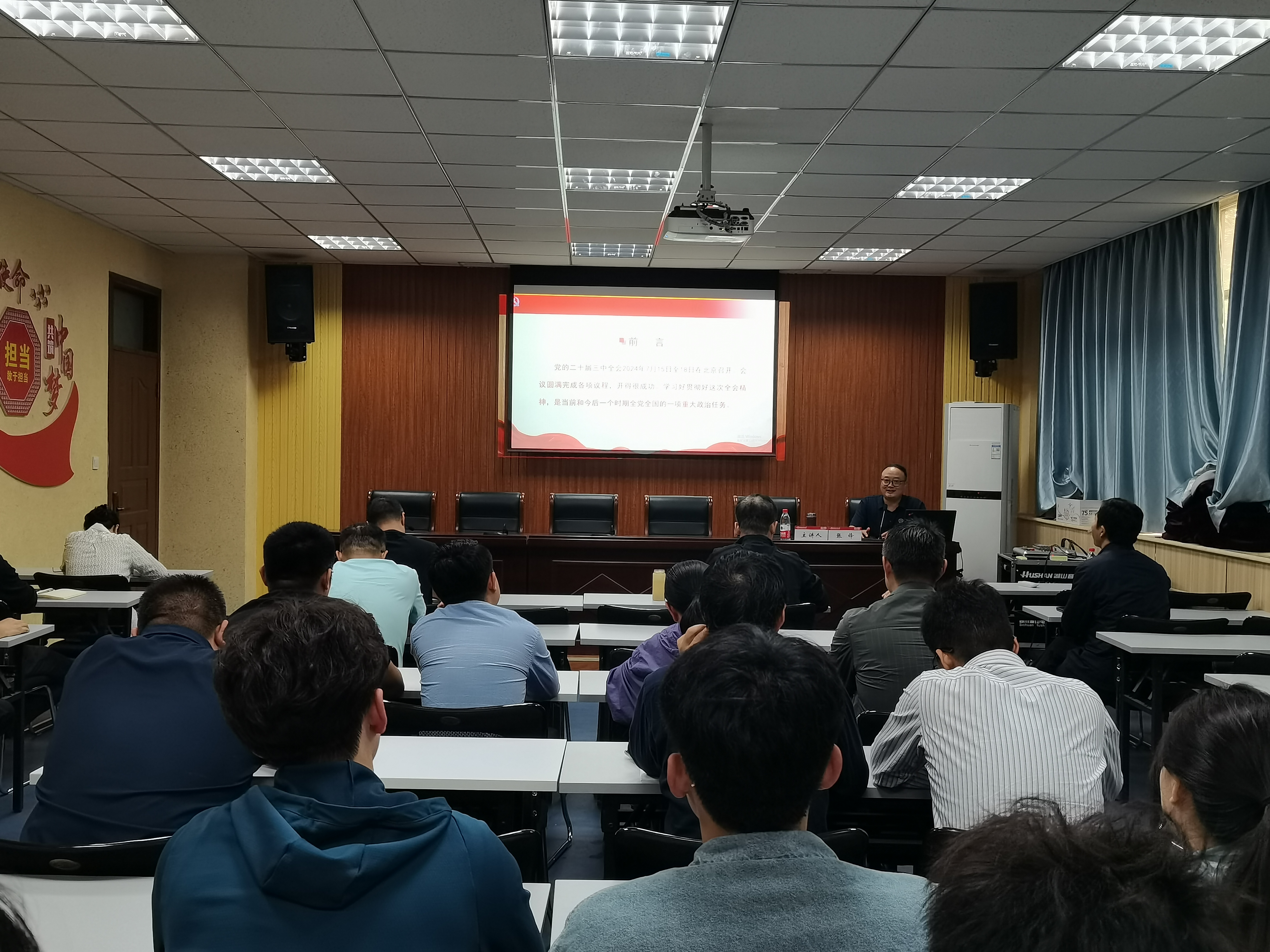 张锋以《贯彻落实二十届三中全会精神挺膺民族伟大复兴使命担当》为题,回顾了党史中历届三中全会的会议内容和重要意义,从二十届三中全会的指导思想、总目标、系统部署等方面重点报告了全会精神的逻辑理路,并就全会中的关键词和如何进一步贯彻落实进行了深入解读。