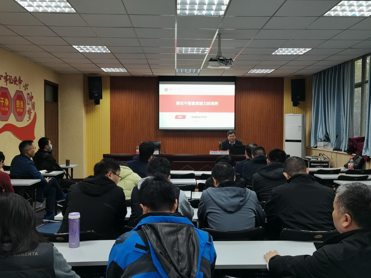11月12日下午,我院在学院C208召开科级干部能力素质提升培训会,邀请校党委常委、组织部部长李永贤作专题报告,学院党委委员、科级干部、支部书记参加,培训会由学院党委书记高飞主持。