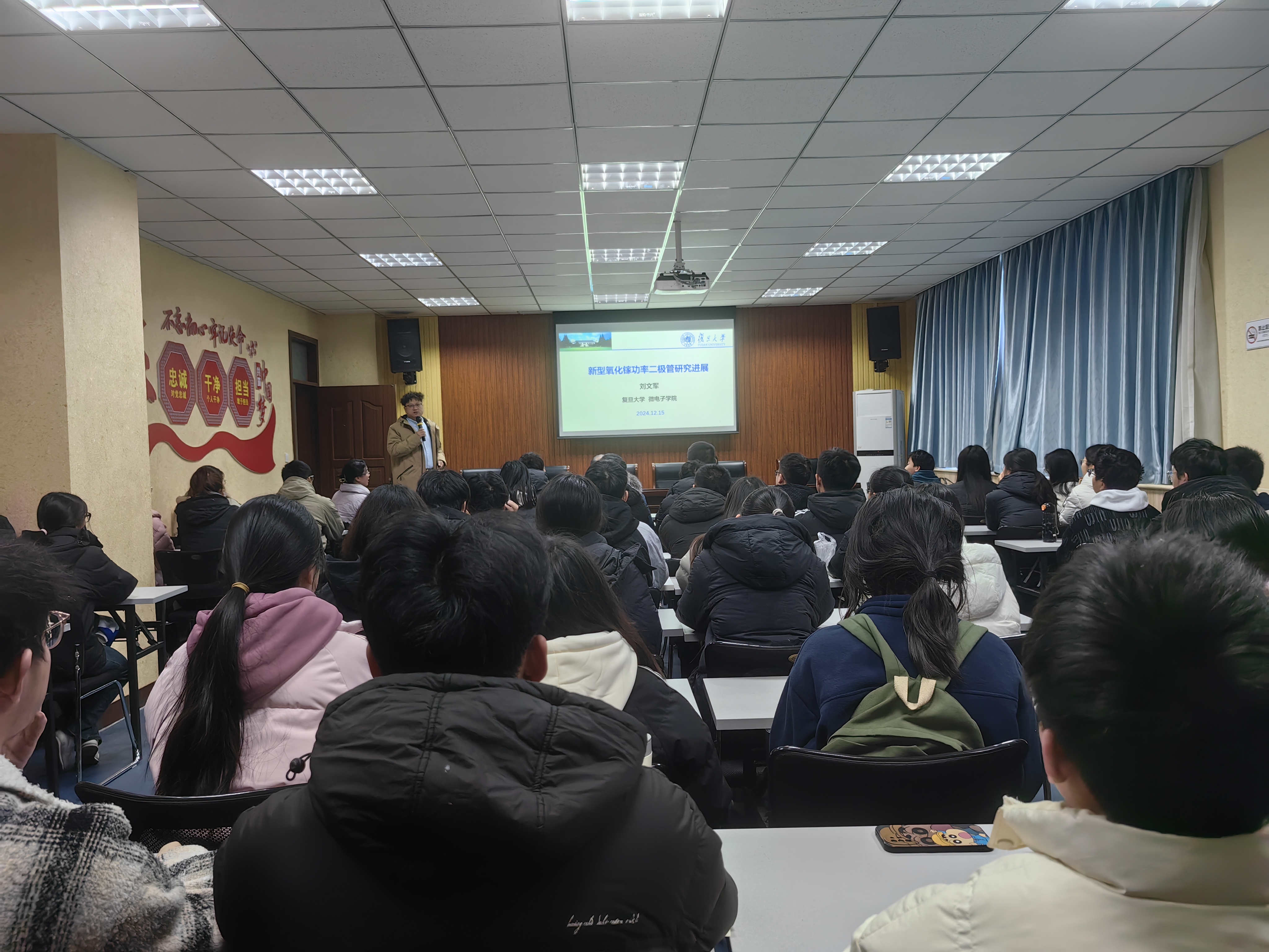 应我院邀请,复旦大学刘文军研究员于12月15日下午14点在物理北楼C-208举行题为《新型氧化镓功率二极管研究进展》的专题学术讲座。学院负责人、师生代表50余人参加讲座。讲座由副院长王芳主持。