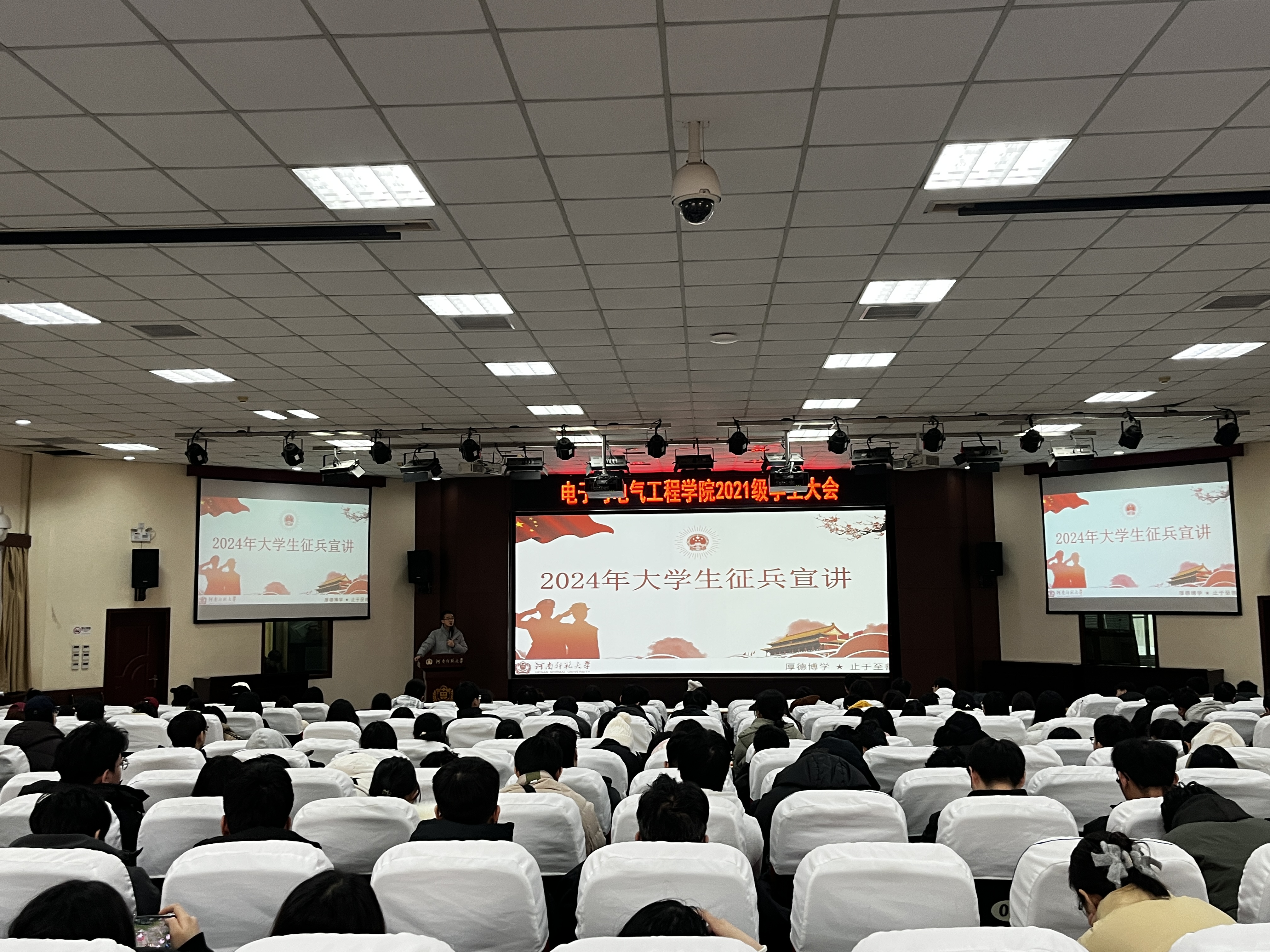 为加强征兵政策宣传,鼓励大学生应征入伍,提高同学们的参军热情,献身国防。12月23日,我院在物理北楼报告厅组织开展2024年下半年征兵政策宣传讲座。学院党委副书记邓晓刚、各年级辅导员、2021级毕业生和其他年级学生代表参加讲座。讲座由梁猛主持。