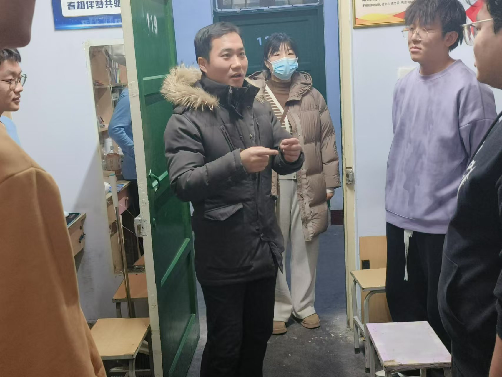 走访过程中,领导老师们与学生亲切交谈,详细询问了学生在校学习、住宿、饮食等情况,了解学生的假期安排和计划,有针对性地给予指导和帮助,叮嘱学生离开宿舍时要断水断电、关好门窗、不存放贵重物品;要注意人身和财产安全,提高安全防范意识,往返途中选择正规营运车辆,警惕网络和电信诈骗;要合理规划寒假学习生活,勤学习、多思考、善规划,劳逸结合,加强身体锻炼。