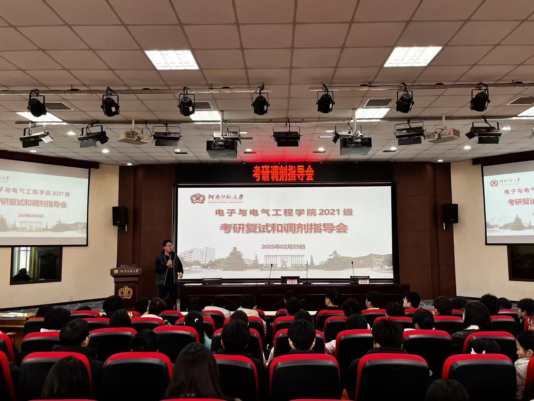 为缓解考研同学焦虑情绪、帮助大家科学备战复试和掌握调剂技巧,我院于2月25日下午在物理北楼报告厅组织开展2025届考研复试调剂指导会。学院副院长耿建泽、年级专兼职辅导员、2021级全体考研上线同学共同参加,会议由梁猛主持。