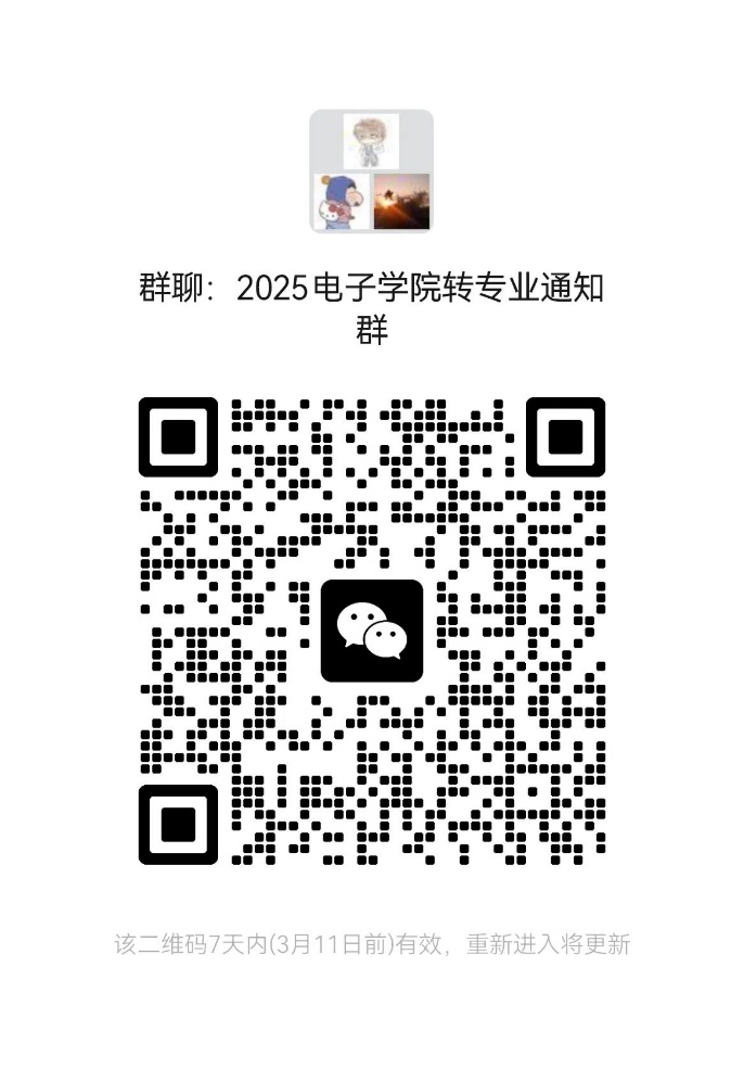 根据《伟德官网下载苹果版2025年普通全日制本科生自主选择专业工作的通知》要求和《电子与电气工程学院2025年全日制普通本科生自主选择专业工作考核办法》,预定于2025年3月12-3月17日对申请转入电子与电气工程学院的学生按照备案的考核办法进行考核。未按时参加考核的同学,视为主动放弃参加考核资格。具体时间、地点和要求请关注后续通知。请符合转入条件的同学们扫描下方二维码,加入微信群。微信群仅是便于通知考核、面试相关事宜,不作其他用途。