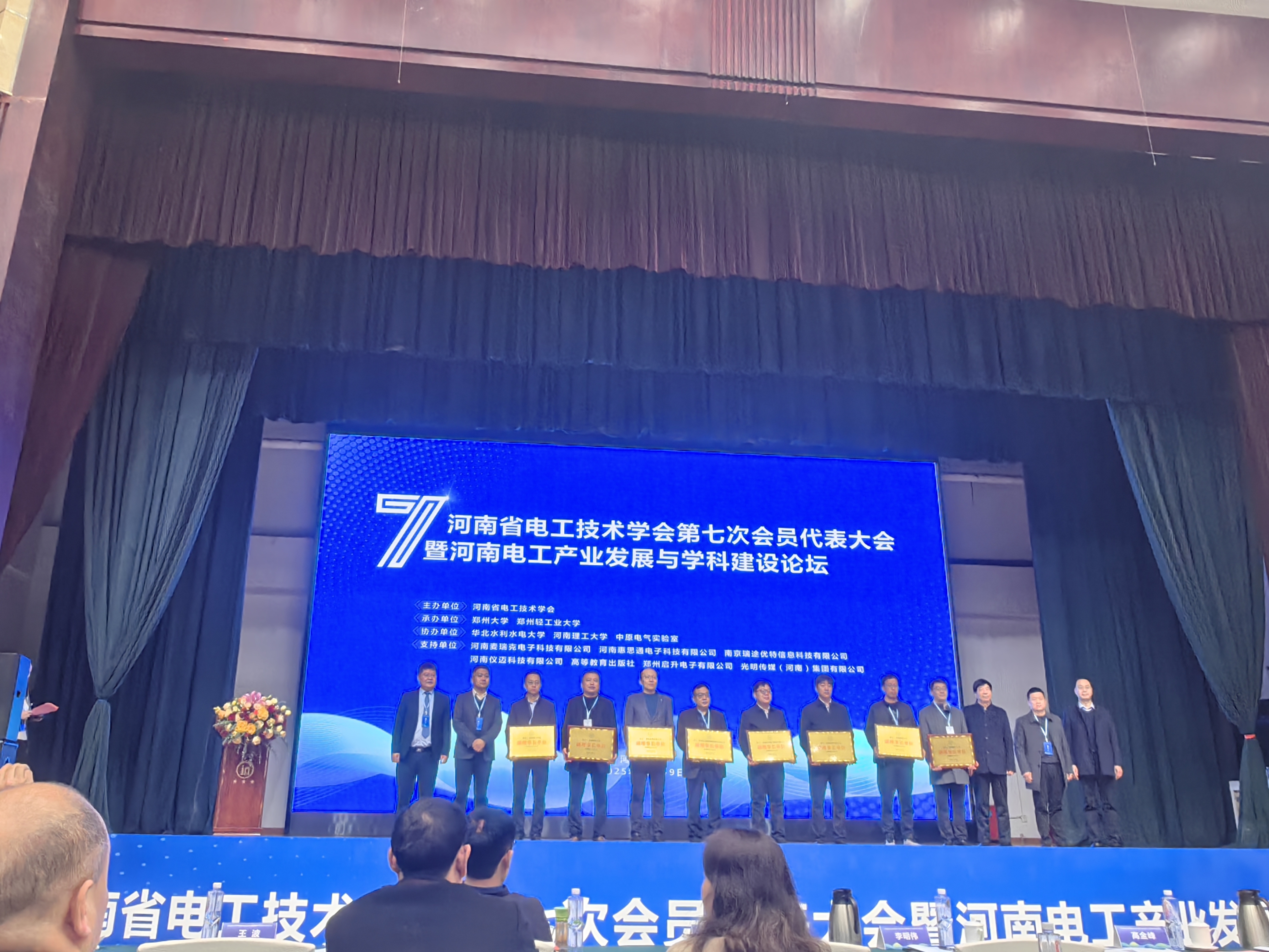 3月7-9日,河南省电工技术学会第七次会员代表大会暨河南电工产业发展与学科建设论坛在郑州市召开,来自全省各高校和企业电工电子领域的300余名代表参会。我校荣获“河南省电工技术学会第六届理事会先进单位”称号,同时当选第七届理事会副理事长单位。