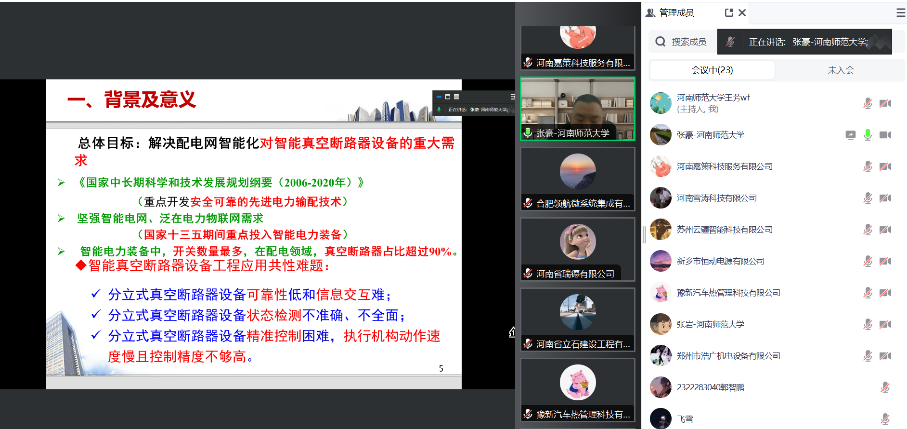 会上巴雁远副教授、张岩副教授、张豪副教授分别围绕MEMS器件设计与加工、铪基铁电薄膜相结构调控及其信息存储应用研究、高压智能真空断路器关键技术及其应用等方面展开汇报。主讲人详细介绍了各项研究的行业背景、研究过程和取得的成果,与企业深入交流各项技术在企业实践过程中的应用情况。