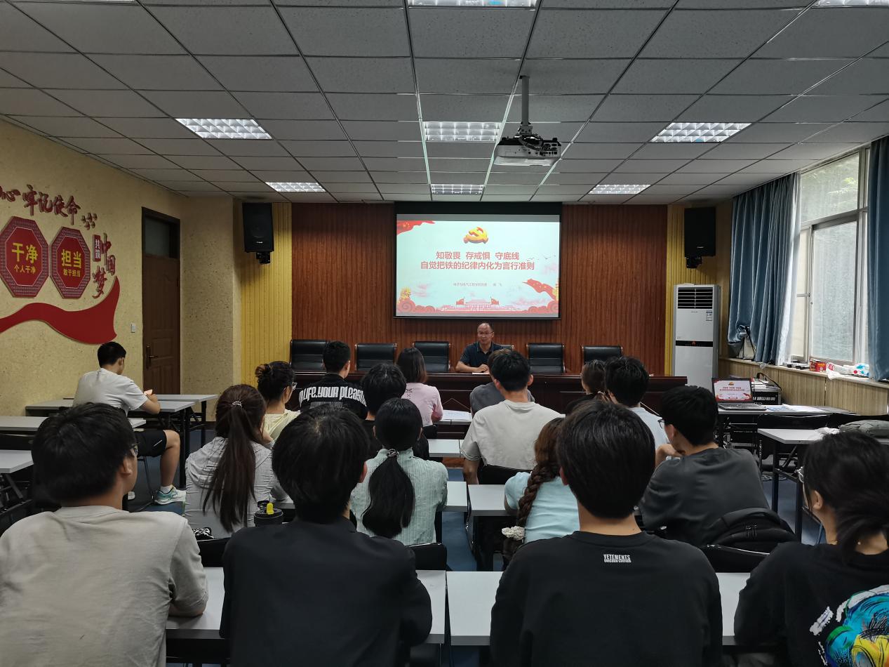 学院党委书记高飞向光荣加入中国共产党的新党员表示祝贺,并以“知敬畏、存戒惧、守底线,自觉把铁的纪律内化为言行准则”为题向全体新党员上了党纪学习教育专题党课。他向全体新党员提出三点希望与要求,一是要坚定理想信念,进一步强化理论武装,增强“四个意识”、坚定“四个自信”、做到“两个维护”;二是要牢记入党誓词,严于律己、率先垂范,增强党性修养,争做合格党员;三是要时刻以一名党员的标准严格要求自己,知行合一,用实际行动为党旗增光添彩。