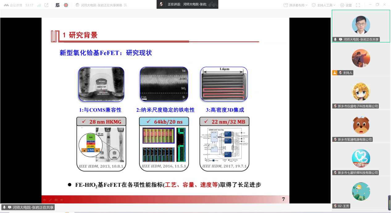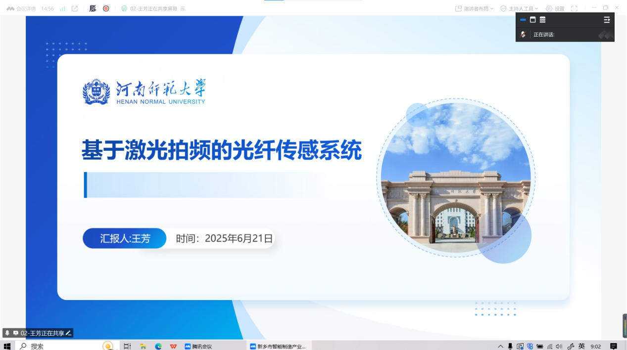 推介会上,王芳教授首先带来了“基于频率解调技术的光纤多物理量传感系统”的主题分享,深度解析先进的激光拍频解调技术,全景展现光纤传感技术在工业监测、智能检测等领域的前沿应用场景,为我们带来了光纤传感技术的前沿应用。随后张岩副教授和刘勐副教授分别就“抗疲劳氧化铪基铁电薄膜及其信息存储器件”、“6G 通信感知共存与一体化系统”等主题进行了深入的讲解,为我们带来了前沿科技的前瞻性解读。