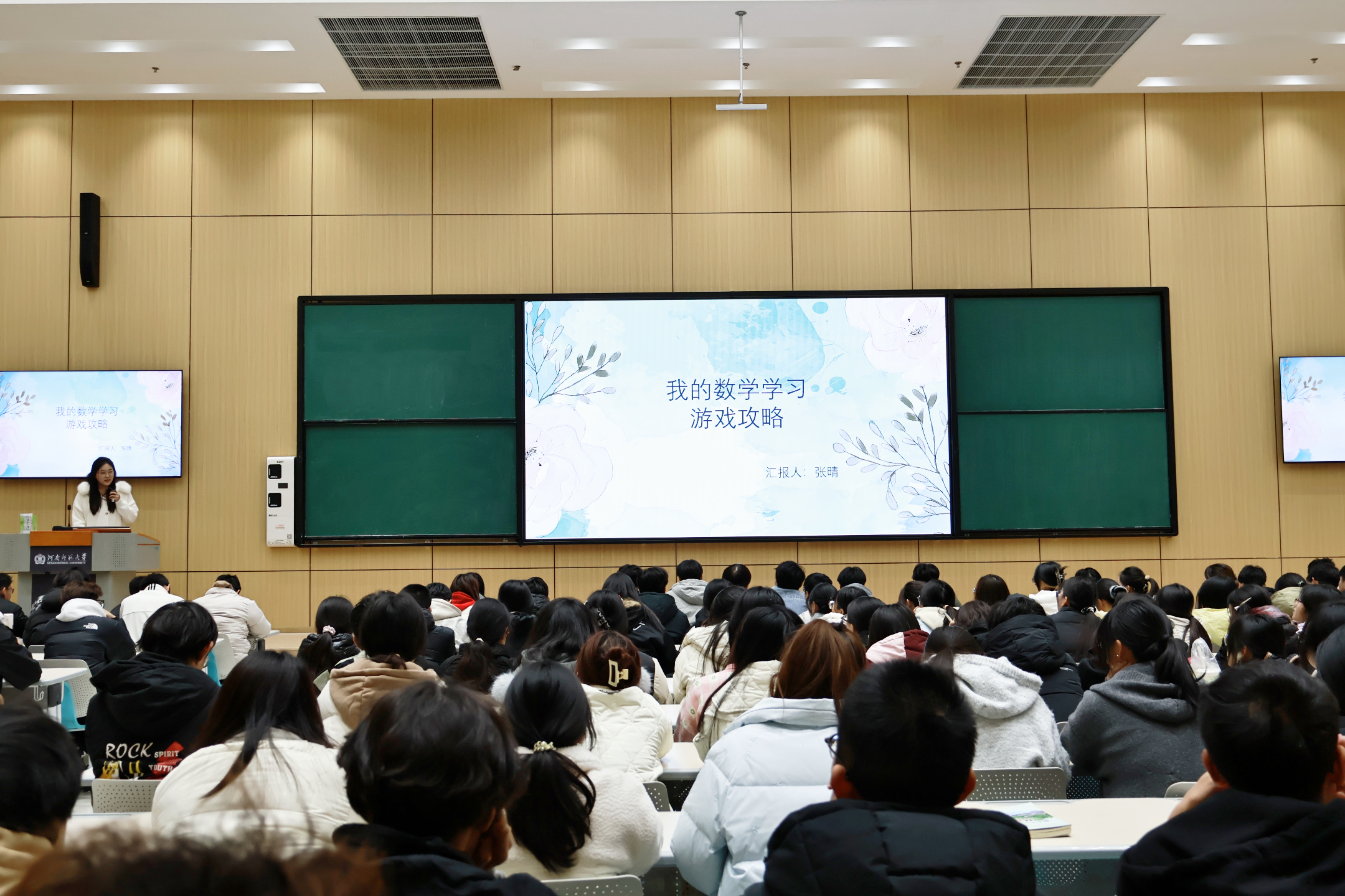 2023级赵一凡同学结合专业课学习经历,分享了高效学习方法。她鼓励同学们在课堂上专注听讲、积极互动,强调平时积累的重要性,建议认真完成课后习题,并善于利用网络资源拓展学习。同时,她提醒大家避免“照搬答案不思考”“忽略细节致失误”及“遇难即退不坚持”等常见误区。2023级张晴同学以生动形象的方式介绍了数学学习心得。她将学习过程概括为四个环节:课前预习抢先“剧透”,课中专注做好笔记,课后通过“记忆填空”巩固知识,最后通过练习“打怪升级”提升解题能力。她的分享贴近实际,方法清晰可行。2023级王紫琳同学聚焦英语四六级备考,详细解析了考试的分值构成,并分别就阅读、听力、翻译与写作等部分,分享了针对性的训练方法和应试技巧,助力同学们高效备考。2024级贾新生同学则结合自身参赛经历,介绍了电子设计大赛、机器人大赛、蓝桥杯、数学建模等多项学科竞赛的基本情况与备赛要点。他提醒同学们,竞赛成绩离不开扎实的学业基础,建议大家在日常学习中注重编程能力的培养,如掌握Python、C语言等相关技能。最后,辅导员付康康老师对本次分享会进行总结。他指出,学长学姐们取得的成绩并非轻松得来,而是依靠不懈努力和持续投入。他鼓励新生以他们为榜样,树立积极向上的学习态度,脚踏实地,刻苦钻研,充实地度过大学时光。