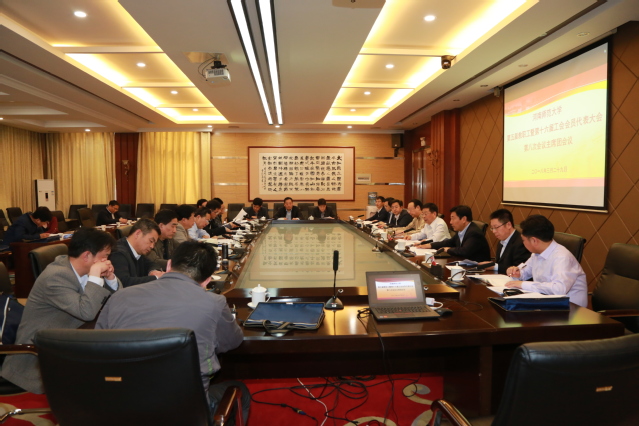 3月29日下午,我校第五届教职工暨第十六届工会会员代表大会第八次会议主席团会议在勤政楼第三会议室召开。校领导赵国祥、常俊标、臧振春、陈广文、李雪山、马治军、张尚字、刘玉芳出席会议。第五届教职工暨第十六届工会会员代表大会第八次会议主席团成员参加了会议。会议分两个阶段进行,会议的第一阶段由校长常俊标主持,会议的第二阶段由校党委书记赵国祥主持。