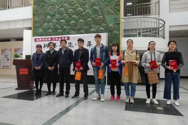 随后石军红书记,白新勤、王瑞珍副馆长为阅读推广活动中获奖同学颁奖。获奖同学代表外国语学院侯孟珂、社会事业学院张展分别代表品读之我鉴和手工艺品征集活动获奖选手发言。侯孟珂分享了读书对于自我了解、确立三观的重要性。张展围绕青年学生不仅要了解民风民俗,更要努力继承优秀传统的使命表达了自己的看法。