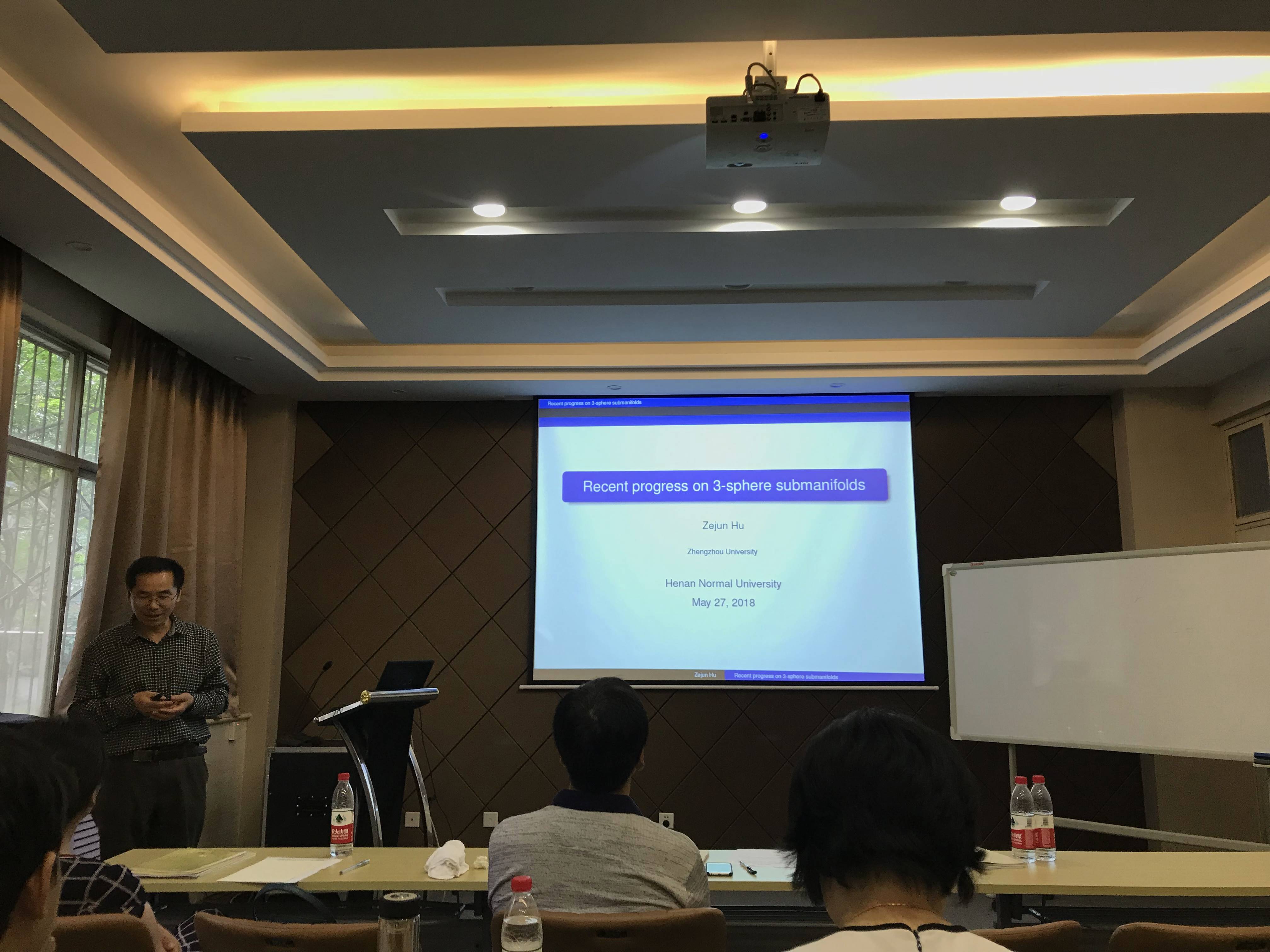 5月27日下午,应数学与信息科学学院邀请,郑州大学博士生导师胡泽军教授在数学学院南楼103教室作了一场题为“Recent progress on 3-sphere submanifolds”的学术报告。学院相关负责人、几何教研室教师、研究生聆听了报告。