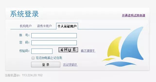 5.然后用在学校ip范围内的账户登录,登录成功以后就可以在任意地点使用读秀。