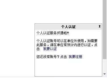 1.首先在学校ip范围内输入网址:www.duxiu.com.读秀首页右下角会弹出“个人认证”小窗口,如图: