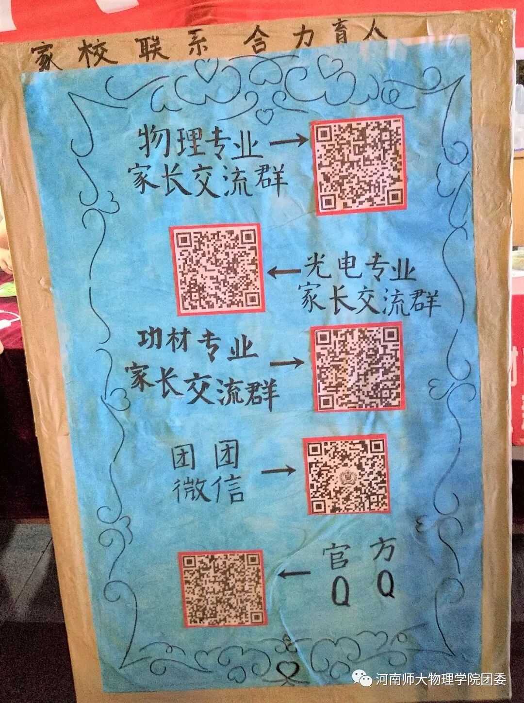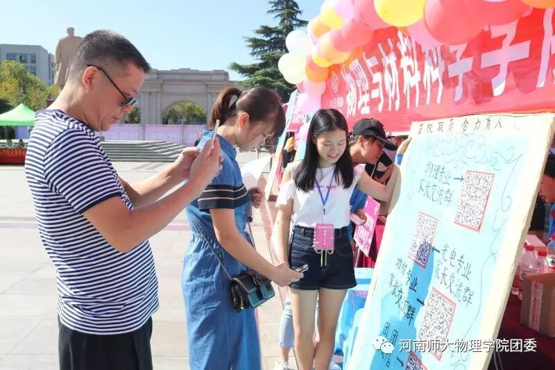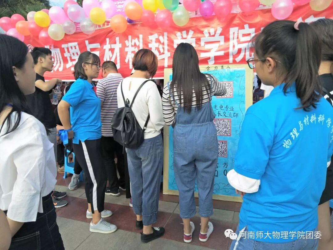 在迎新场地的休息区,家长可以扫描“物理与材料科学学院家长交流群”的二维码,学院的副书记、辅导员、各专业班主任等在微信群中为学生家长解疑答惑。同时,新生辅导员、班主任分别建立各班级微信群,搭建交流平台,密切学校老师与家长之间的联系,让家长能够第一时间了解学生在校学习生活表现。