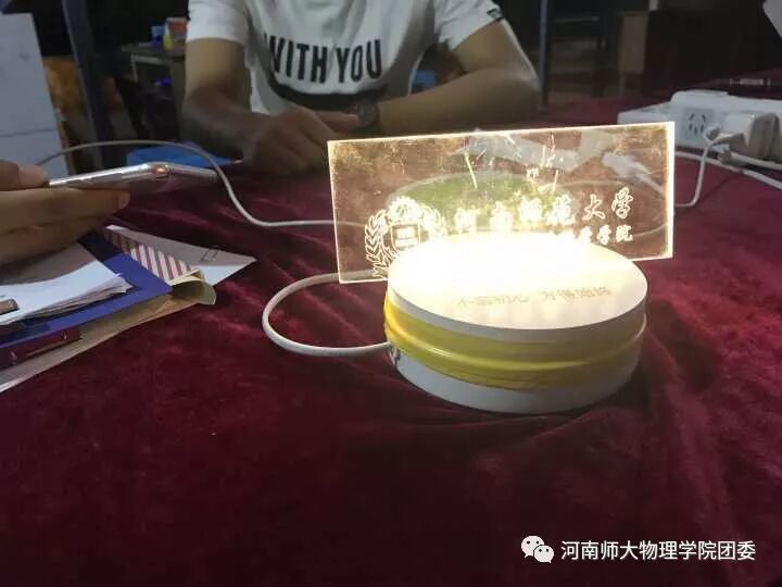 为响应学校迎新工作“绿色化”“数字化”的要求,我院为新生准备了“一袋入学”,透明文件夹中装有来自本专业学长学姐对于自己的祝福,更有姓名、qq、联系电话等信息。这样能够让新生与优秀的高年级学长学姐已建立“一对一”的联系,随时可以就自己关心的大学生活、专业学习、学生活动、课余生活等进行亲切交流。此外,为展示我院特色学科建设,我们在迎新中采用了学生自制“激光-机械雕刻机”、3D打印机制作纪念品,为新生准备院系胸章。既让新生家长看到我们的学生学有所长,也同时激发新生的学习兴趣,帮助其明确学习方向,努力向学长学姐靠拢。