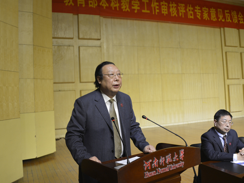 11月1日下午,我校在音乐厅举行教育部本科教学工作审核评估专家意见反馈会。评估组组长李志义、副组长张全国等专家组成员,省委高校工委专职副书记、省教育厅党组副书记郑邦山,校党委书记赵国祥、校长常俊标等出席会议。反馈会由张全国主持。