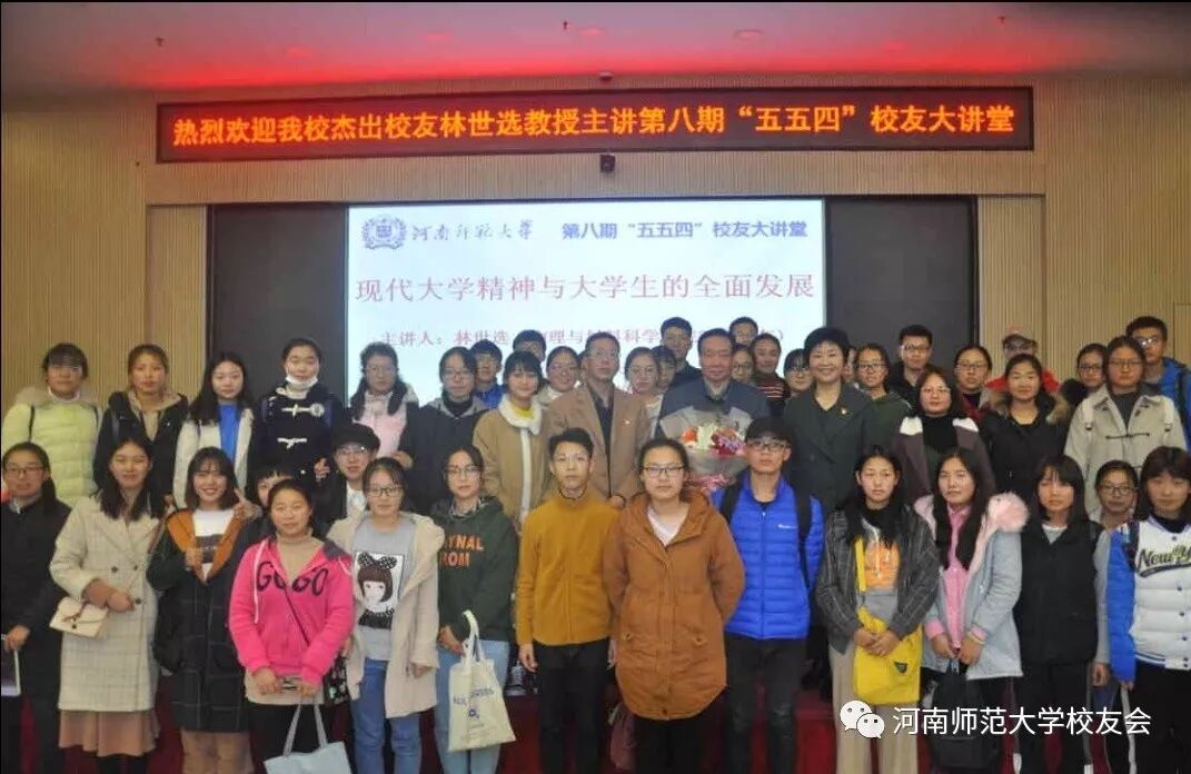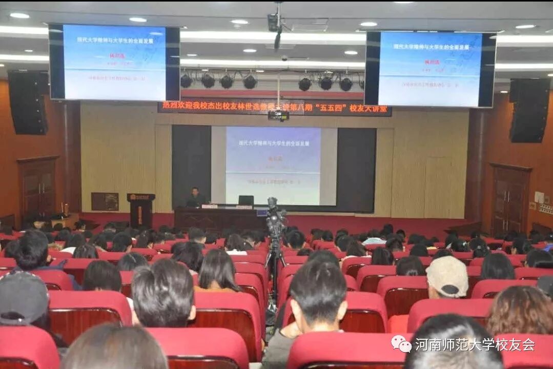 本期大讲堂的主题是“现代大学精神与大学生的全面发展”。林世选从大学的发展与特质、现代大学精神、大学生全面发展面临的人生挑战、弘扬现代大学精神促进大学生全面发展等四个方面进行论述。他深情地回顾了河南师大学习工作的岁月,追忆了魂牵梦绕的五五四教室,感恩母校对自己的培养与激励。他结合自身经历和全国教育大会精神,阐述了大学是什么,大学的特质是什么,比较了中西方大学的演化与差异。他对大学精神进行了深入阐述,并向同学们详细阐释了我校校训的含义;分析了大学生全面发展面临的挑战与机遇,并对大学生怎样全面发展提出了“八立”,即:立德、立人、立志、立学、立能,立友、立体、立行。他指出,这八个方面是大学生成人成才、全面发展的基本内涵。