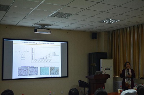 11月16日下午,法国国家科学研究中心研究主任、武汉大学彭玲教授应化学化工学院邀请在化学北楼N102报告厅作了题为“Drug Discovery and Drug Delivery in Cancer Therapy”的学术报告。化学化工学院有关学科带头人、青年骨干教师、研究生参加会议。