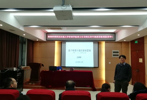 12月10日上午,西安交通大学管理学院博士生导师庄贵军在商学院119报告厅作了一场题为“基于顾客价值的营销逻辑:营销一以贯之的理论主张”的学术讲座。商学院骨干教师及部分本科生聆听了此次讲座。