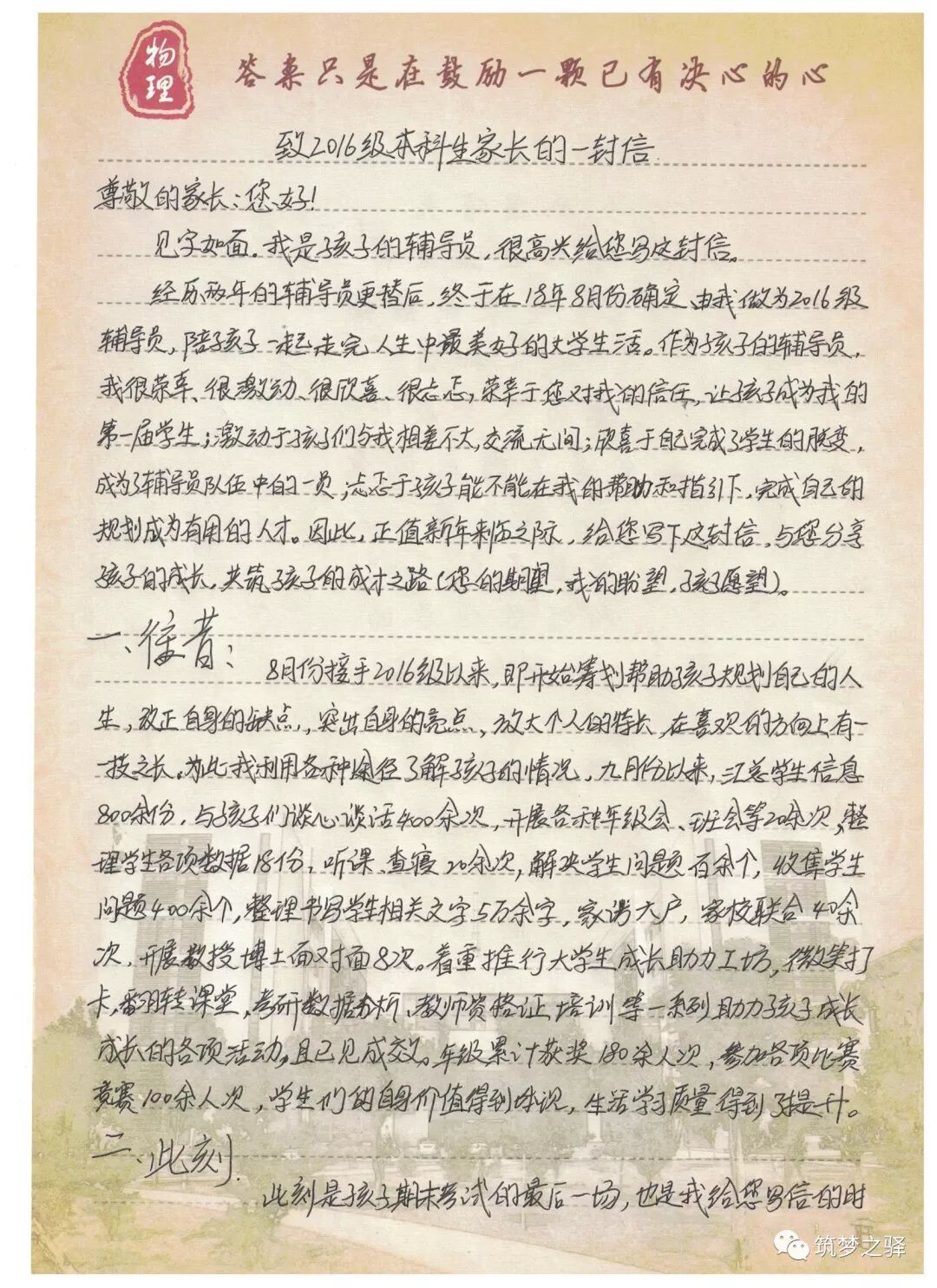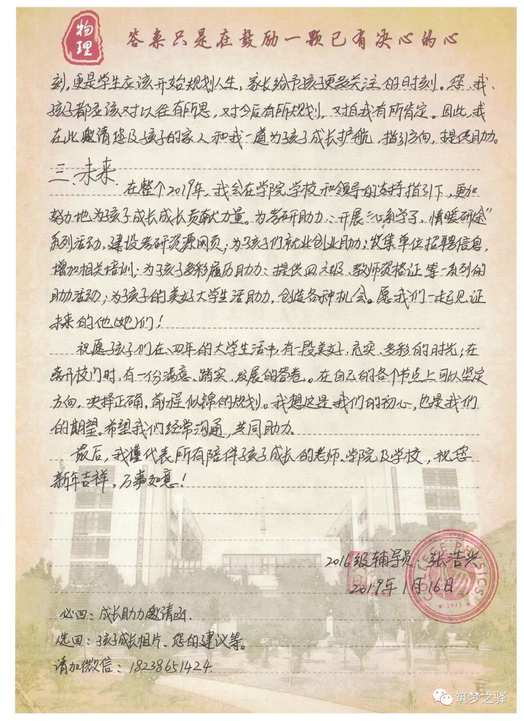 为了更好地为学生的生活学习服务,更好地为学生的成长成力,在这份礼包中,张浩兴老师还特意为家长们写了一份信,并诚挚邀请全体学生的家长参与到学生的成长中来,一起为学生的未来增砖添瓦。