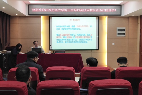 4月2日下午,应商学院邀请,江西财经大学博士生导师吴照云来我校讲学。本次报告会在商学院119报告厅举行。商学院全体教师共同聆听了此次讲座。本次讲座由商学院院长任太增主持。