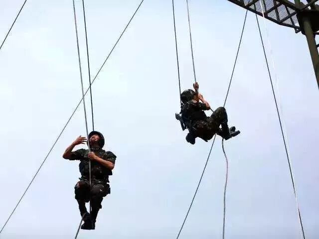 特种兵们的手和腿渐渐爬到颤抖,却依然坚持着向上攀爬。有人在爬绳期间忍不住哭了起来,却是带着泪接着向上爬。