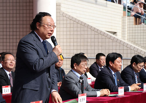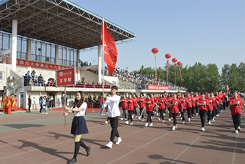4月17日上午,我校第五十八届运动会开幕式在西区塑胶田径场举行。党委书记赵国祥,校长常俊标,党委副书记、工会主席臧振春,党委副书记陈广文,党委常委、副校长李学志、李雪山、马治军,纪委书记张尚字,党委常委、副校长岳杰勇、刘玉芳出席本次开幕式。各学院负责人和本届运动会组委会成员在主席台就坐。开幕式由李学志主持。