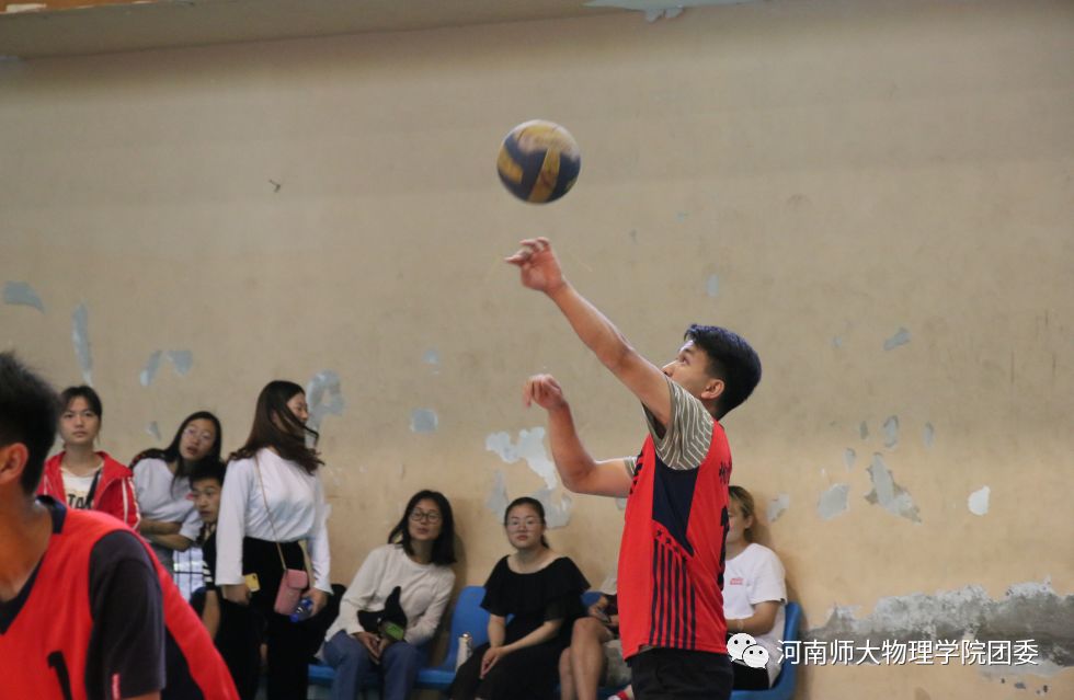 比赛一开始,物理院运动健儿们便快速进入状态,以自己有力的臂膀发球进攻以及回击敌方攻球。双方僵持互不相让!