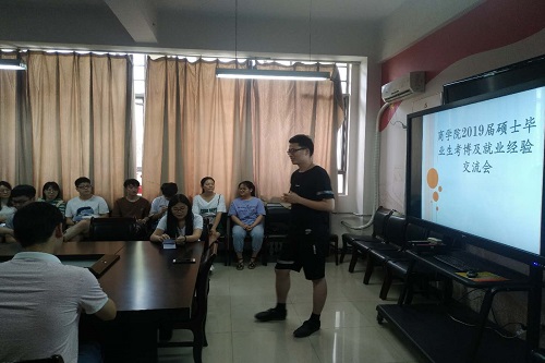 6月4日下午,商学院在学院二楼会议室举办了2019届硕士毕业生考博及就业经验交流会。学院相关负责人和全体硕士生参加本次会议。