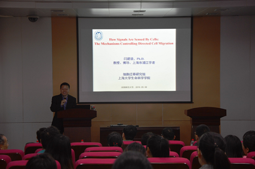5月6日上午,应我校邀请,上海大学闫建设教授在生物东楼报告厅作了题为“How signals are sensed by cells: the mechanisms controlling directed cell migration”的学术报告。60余名师生参加了此次报告。