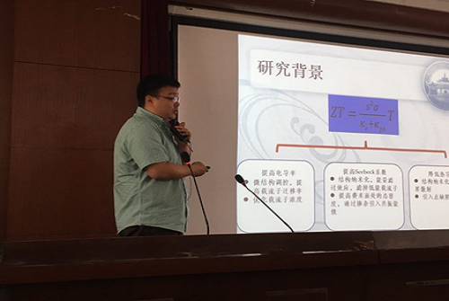 王自昱以《热电材料及热电器件在汽车中的应用》为题,向师生介绍了汽车尾气热电发电回收利用是降低油耗的重要途径之一。他根据车尾气废热能量特征指出发动机附近排气管温差500°C,排气管其他区域温差400°C。测试各工况条件下,测得最高温度为480°C左右,最低温度为240°C左右,实验结果表明,测试排气管的温度区间符合BiTe系热电转换材料的最佳ZT值温度区间。可通过微结构调控、提高载流子迁移率、优化载流子浓度来提高电导率;利用结构纳米化、能量滤过效应,滤掉低能载流子、提高费米面处的态密度、掺杂引入共振能级从而提高塞贝克系数;利用结构纳米化、增大晶界散射、引入点缺陷来降低热导率,通过上述方法找到最佳的ZT值。