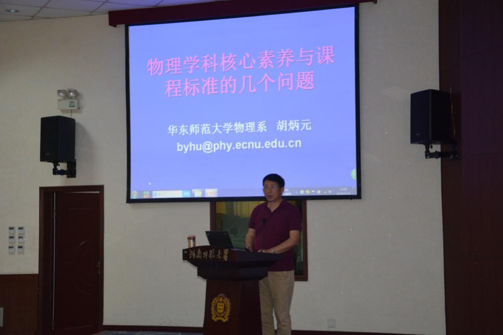 胡炳元以《物理学科核心素养与课程标准的几个问题》为题,主要向师生介绍了物理课程标准为什么要重新修订、课标中存在哪些问题以及如何对课标进行修订等内容。在报告中,他首先介绍了课标修订前的各种调研工作,明确指出了课标中存在的问题。紧接着介绍了课标修订的重点并深入分析了学业质量标准及核心素养的内涵及关系。最后,胡炳元结合具体案例向大家展示了物理学科核心素养水平的考查及评分规则等。