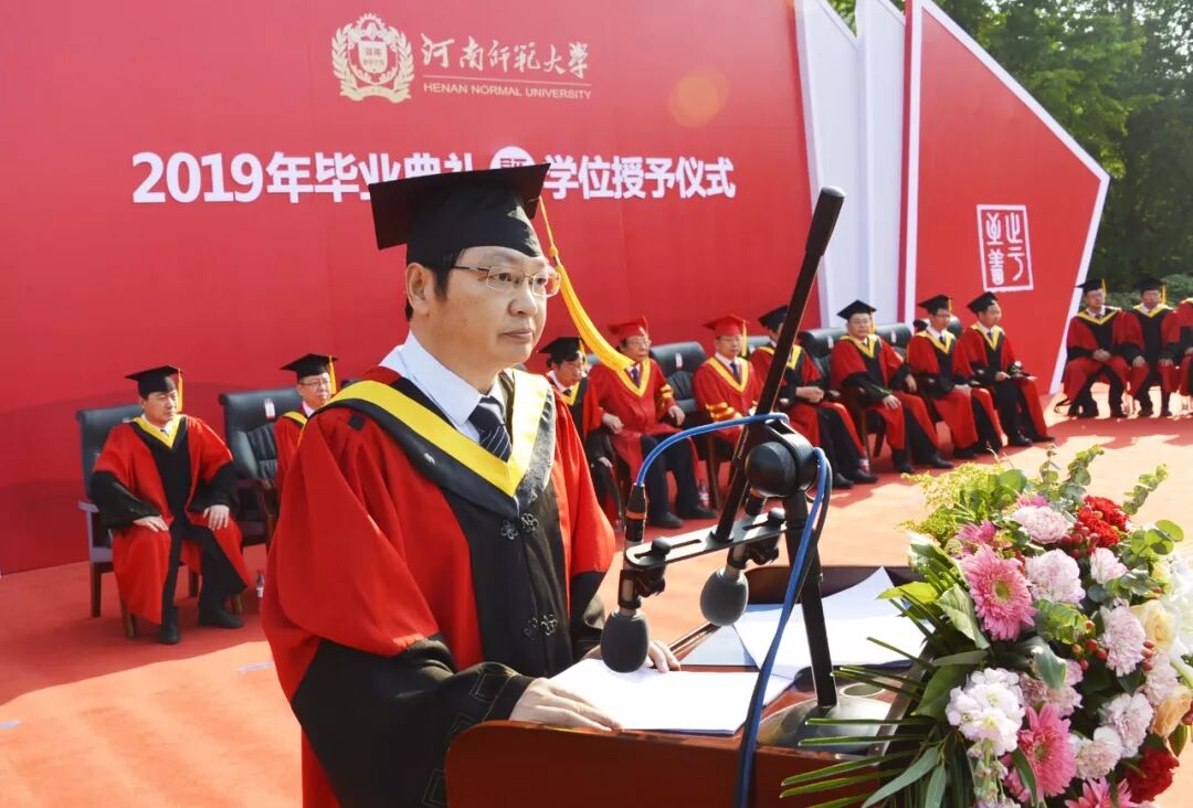 常俊标以新中国成立70周年为切入点,结合自己的人生体会,围绕“爱国报国”深情寄语毕业生。他表示,国是千万家,有国才有家。师大学子作为强国一代,要接好前辈们的接力棒,矢志不移,奋斗不止,在爱国报国中实现自己的人生价值。他勉励同学们: