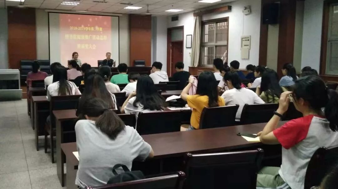 首先,赵馆长总结了本学期阅读推广活动成绩:我馆在研学平台全国范围的寒假活动、Emerald平台全国检索活动、河南省“中科杯”诗词大赛中均荣获组织奖;我馆开展的纪念新乡建市70周年地方文献展、纪念平原省建省70周年地方文献展等活动在校内外反响热烈;毕业生赠书活动是毕业生把精神财富留给学弟学妹,成为联系各届学生的桥梁和纽带,也是大学文化向深层迈进的有益探索;图书馆领导下的学生协会“读者协会”开展20多项阅读推广活动,广泛调动了学生阅读积极性。